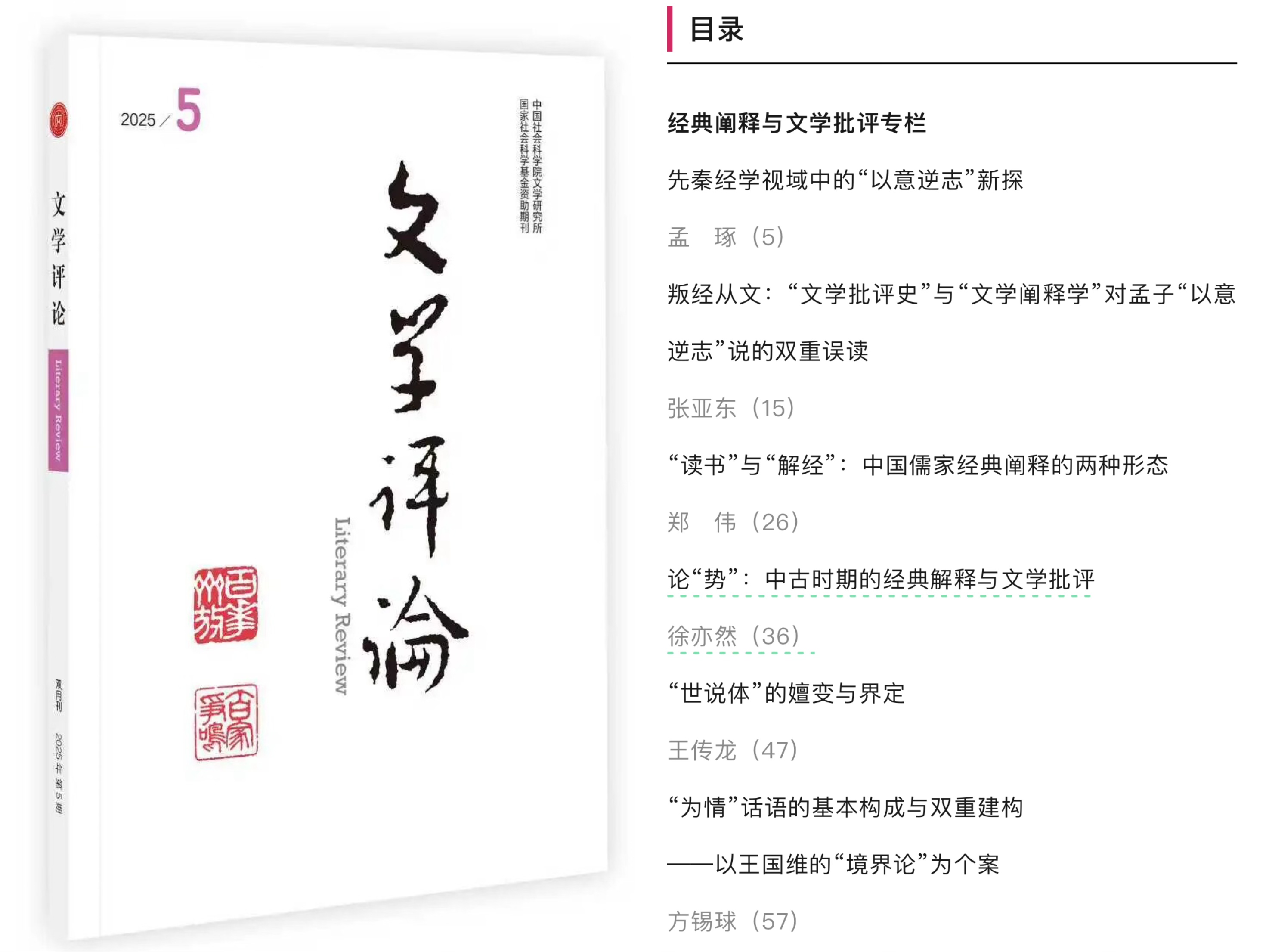 近日,SUNBET申博方锡球教授在文学类权威学术期刊《文学评论》2025年第5期发表学术论文《“为情”话语的基本构成与双重建构——以王国维的“境界论”为个案》。《文学评论》是中国社会科公司主管,中国社会科公司文学研究所主办的全国性文学研究和理论批评的大型学术刊物。