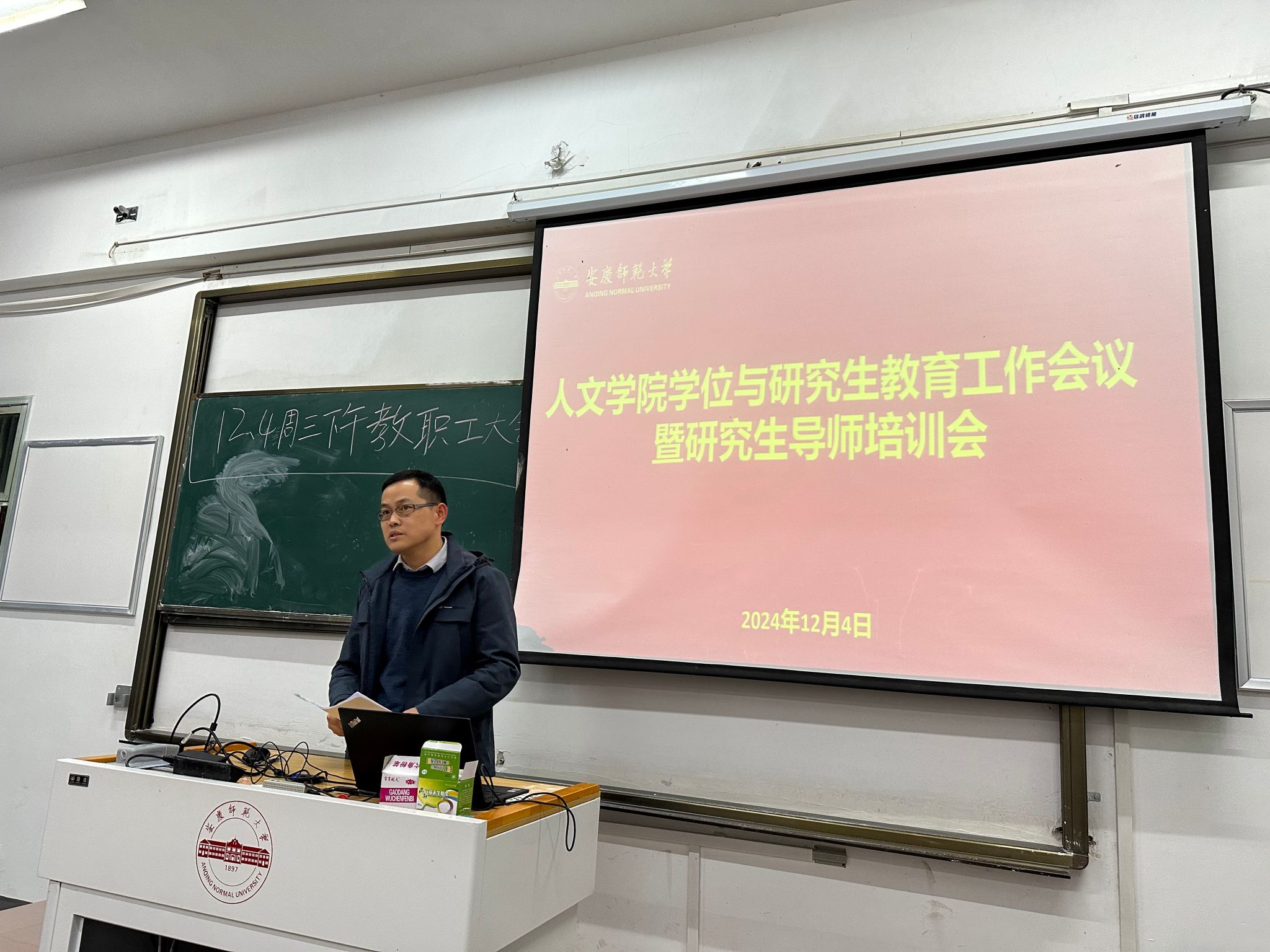 12月4日,SUNBET申博在菱湖校区教学楼215教室召开学位与研究生教育工作会议暨研究生导师培训会。人文公司党政班子成员、各学位点负责人、全体研究生导师、研究生辅导员、研究生秘书等参加会议。副经理沈志富主持会议。