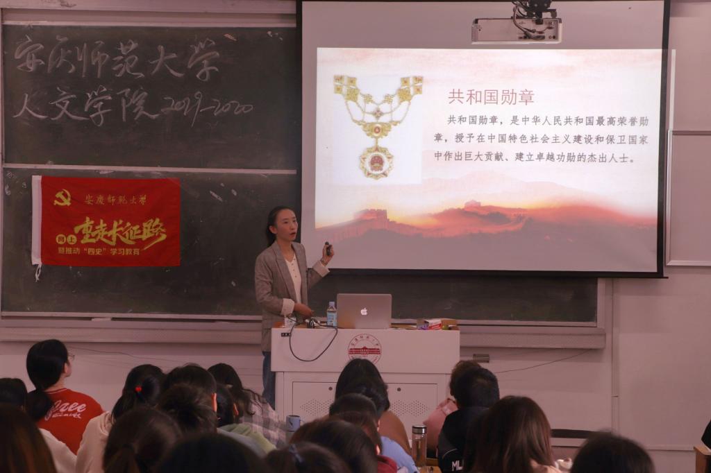 会上,唐宫羽分别向员工们介绍了袁隆平、李延年、于敏、申纪兰、孙家栋、张富清、黄旭华、屠呦呦、钟南山九位共和国勋章获得者,围绕他们的英雄事迹,讲述了他们身上所展现的忠诚、执着、朴实的鲜明品格。唐宫羽用清晰的条理,生动有趣的语言将抽象概念具体化、形象化,吸引着员工们认真聆听。