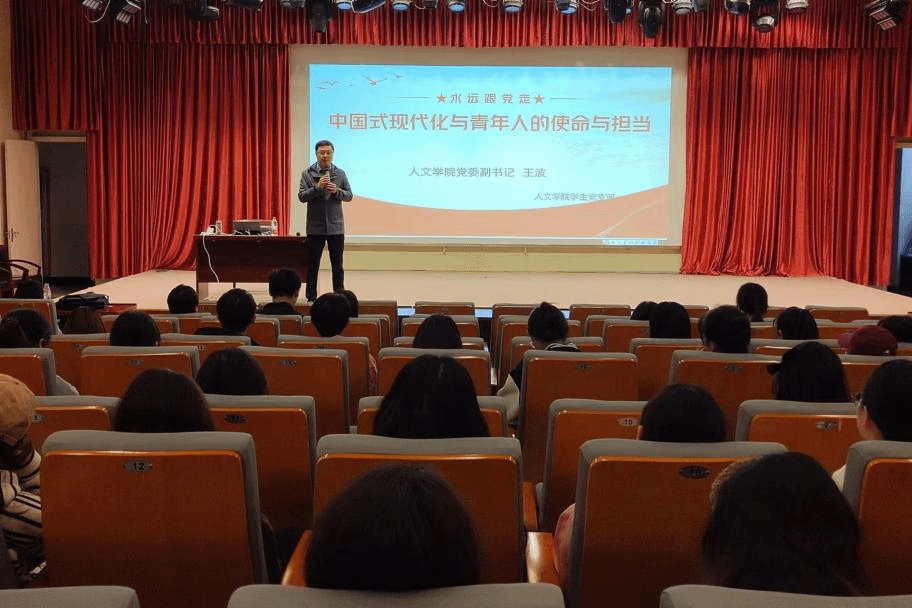 4月10日,SUNBET申博员工第三党支部在图书馆报告厅开展“中国式现代化与青年人的使命与担当”专题党课,人文公司党委副书记王波担任主讲,2021级汉语言文学专业5班、2021级汉语言文学专业6班、2021级汉语言文学专业7班全体员工参加。
