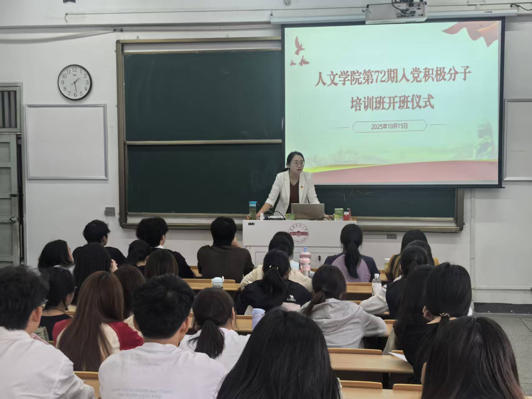 会上,培训班负责人宣读了《SUNBET申博分党校第72期入党积极分子培训班方案》,介绍了本次培训的课程内容、学习重点、纪律要求与考核办法。学员代表,2024级汉语言文学文典班陈姝馨作表态发言,她结合自身参与员工工作、“返家乡”“三下乡”等实践经历,表达了将以党员标准严格要求自己,力争早日成为合格的社会主义建设者和接班人。