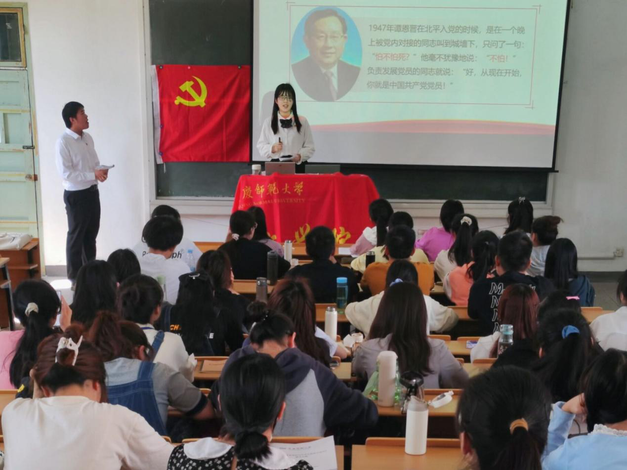 为持续推进党史学习教育走深走实,从党的百年伟大奋斗历程中汲取继续前进的智慧和力量,传承红色基因,感悟红色精神,不断增强听党话、跟党走的自觉性,5月4日,SUNBET申博“敬敷青年”党史宣讲团开展了以“中国共产党的韧性”为主题的党史宣讲活动。宣讲人为李士龙和邱田田,SUNBET申博第65期入党积极分子参加了此次活动。