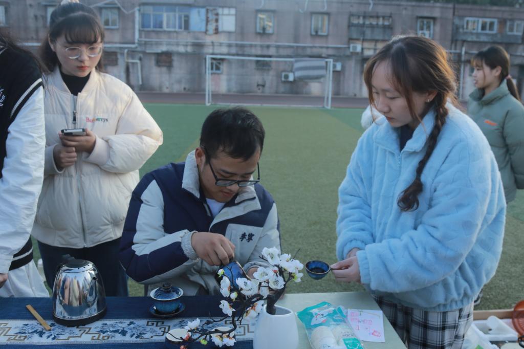 望江挑花和刺绣体验区的周围参与者围了一圈又一圈,员工们凝神专注于手中的针线,在汉语国际教育专业员工的指导下绣出了一个个美丽的图案。“第一次接触刺绣很新奇,以前只看过奶奶绣过这种东西。”中国语言文学类专业2021(5)班的鲁子枫说,“除了亲身体验刺绣,还学到了很多关于挑花的小知识,比如中国的四大名绣等”。