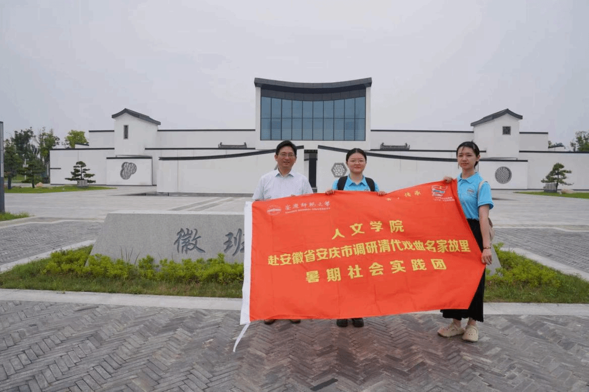 为了更好地了解安庆清代戏曲名家的活动情况,7月14日,SUNBET申博“青·传承”调研戏曲名家故里暑期社会实践团队的成员在指导老师叶当前教授的带领下,前往安庆市怀宁县石牌镇进行实地考察。团队成员先后考察了徽班博物馆的新旧两个展馆,在石牌老街探访了老一辈戏剧盔帽制作手艺人,了解了石牌戏剧小镇的规划及建设情况。