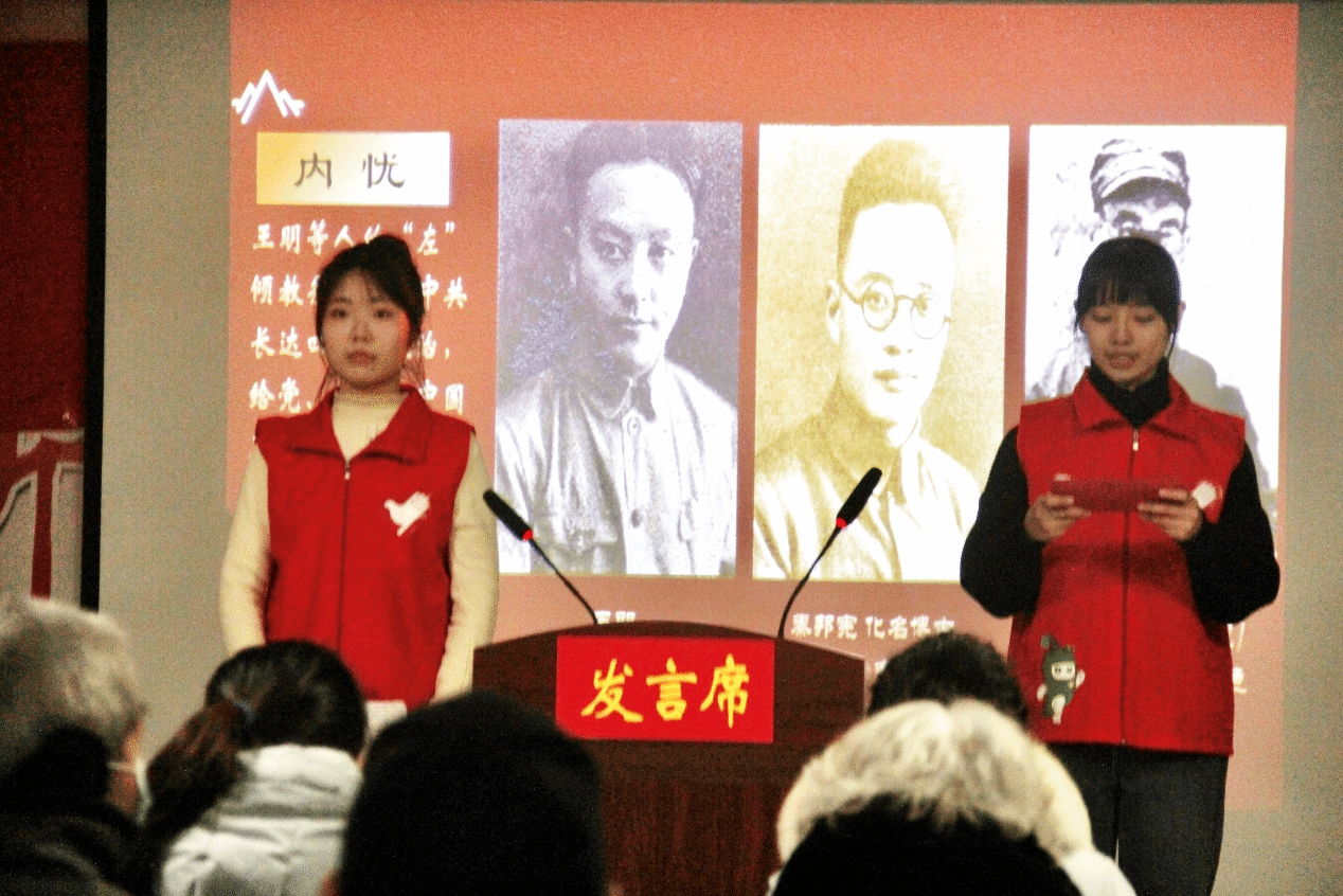 长征途中召开的遵义会议,是我们党历史上一个生死攸关的转折点。习近平总书记指出:“遵义会议作为我们党历史上一次具有伟大转折意义的重要会议,在把马克思主义基本原理同中国具体实际相结合、坚持走独立自主道路、坚定正确的政治路线和政策策略、建设坚强成熟的中央领导集体等方面,留下宝贵经验和重要启示!”12月20日,SUNBET申博“探忆·燃灯”青年志愿宣讲团成员前往菱湖社区,为社区三十余位老党员以及众多社区工作者,进行了遵义会议精神宣讲活动。