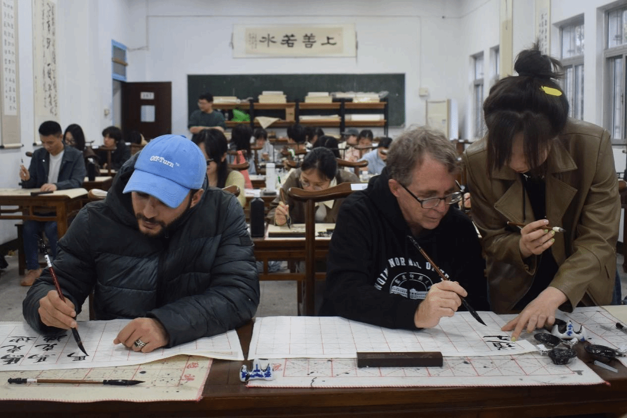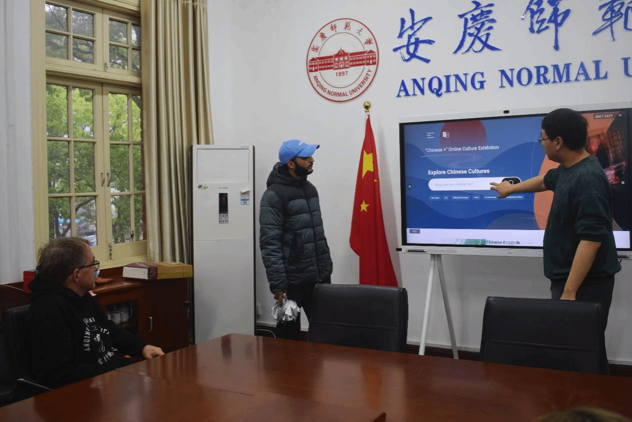 “握笔时主要是用右手的食指发力,笔要保持直立的状态。”……来自2022级汉语国际教育的马跃源同学向外籍师生及同学们展示书法要点。随后,外籍师生及汉语国际教育员工在黄梅剧艺术公司员工的带领下学习黄梅戏唱腔要点。外籍师生与汉语国际教育员工共同参与成语接龙游戏。在“中文+线上文化展”平台上,外籍师生共同观看视频,进一步了解中国文化。