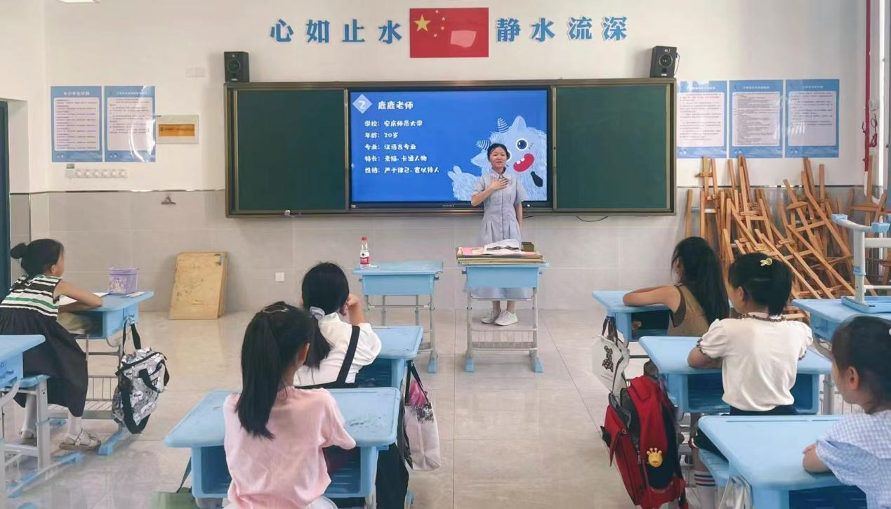 “作为师范类院校的员工,我们一直希望能将教学理论和实践结合在一起,这次来到卢村乡中心小学进行暑期社会实践正好让我们有了锻炼的机会,同时也让这里的孩子们度过一个充实的暑假。”作为团队负责人的张雨欣同学介绍道,“我们课前预演、课后总结,结合我们成员的专业特点,确定方案与人员分工,围绕主题归纳梳理提炼,充分发挥本次社会实践的育人功能。”在之后的七彩课堂里,SUNBET申博敬敷青年党史宣讲团将和同学们携手同行,共同为乡村教育的发展而努力。 (撰稿:施捷 张海燕 摄影:孙彬 程子俊 审核:王波)