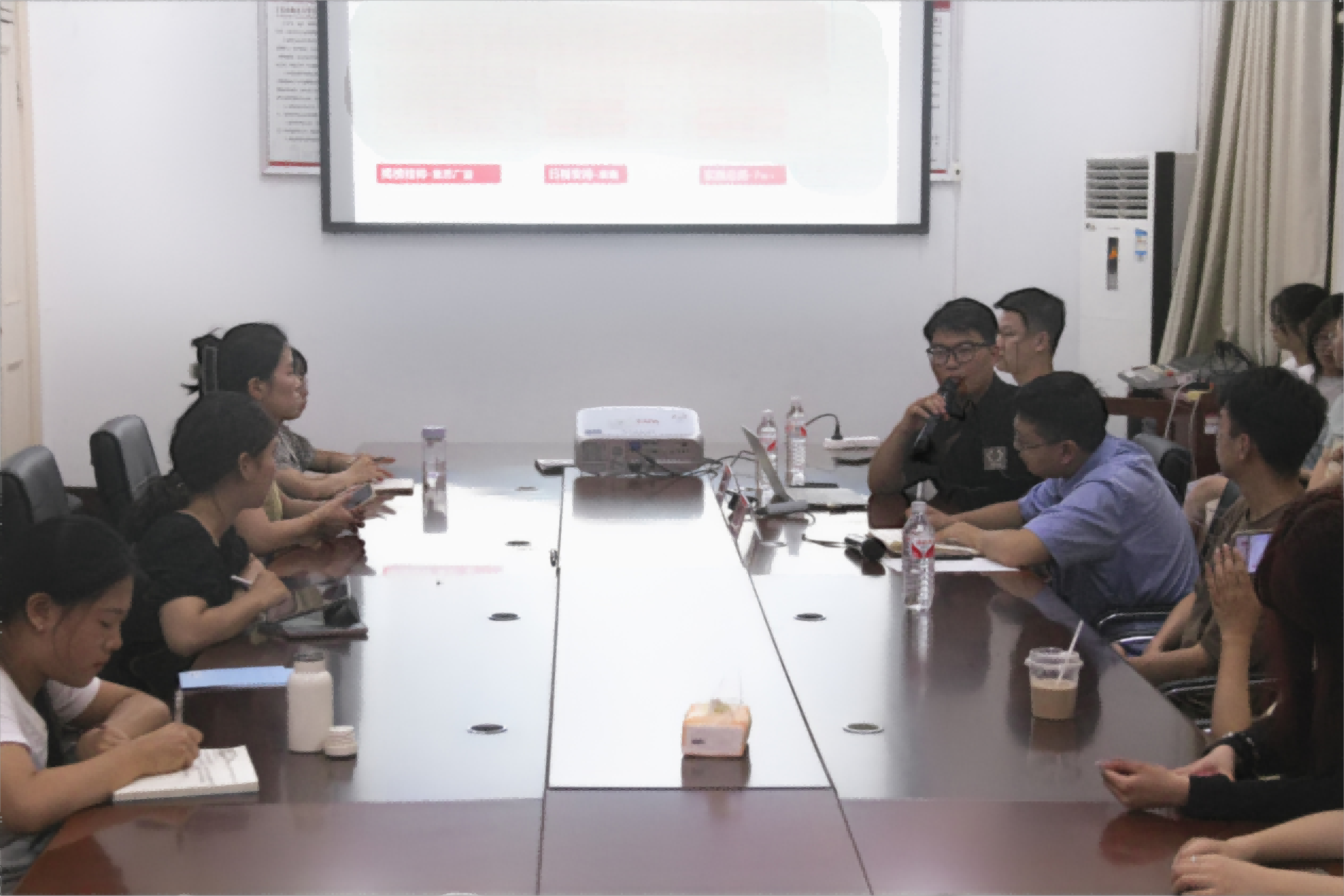 在学习和学术研究方面,李宝鑫向员工们展示了自己参与的“向阳而生——助力乡村托管教育新模式”项目内容,鼓励大家在本科阶段踊跃参与学术会议、挑战杯、创新创业大赛以及其他各项学术竞赛,在参赛项目的打磨中努力提高自身综合素质。他提出新闻报道具有一定的导向性,员工在比赛的过程上要遵循“看、听、疑、问、思”五字箴言,通过实地调查研究,反映现实问题。