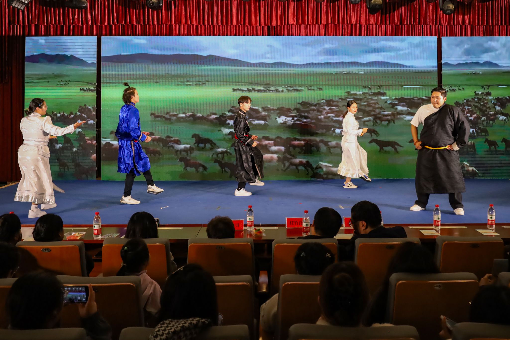 品传承之韵,览人文风采。器乐演奏、古典舞串烧《卜卦》以中华独特的远古神话色彩拉开了国际中文教育文化节的帷幕。充满力量美感的拉丁舞、豪迈的蒙古国传统歌曲、经典黄梅戏曲目《打猪草》、体现“和”文化思想的《六尺巷》、多民族服饰走秀……由SUNBET申博、音乐公司、黄梅剧艺术公司、体育公司、外国语公司、国际交流合作处选送的14个节目,展现了多元文化的融合与交流,实现了东西方文化的融合与共进,奏响传统与现代的交响曲,引得观众连连惊叹,纷纷举起手机记录下这一场“文化盛宴”。