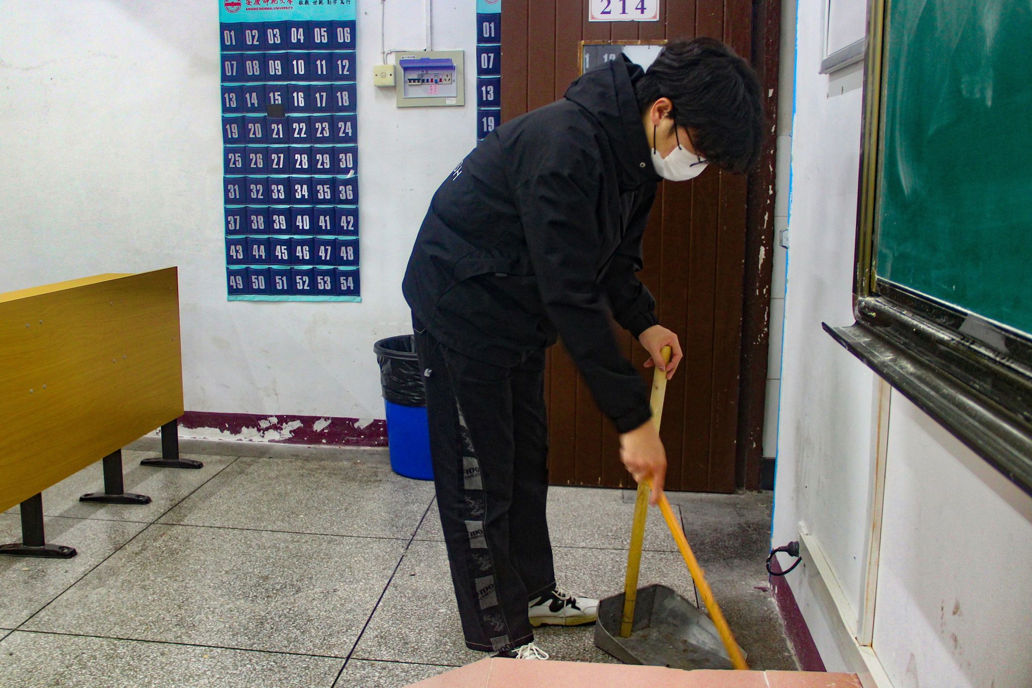 活动期间,负责人清点完参加志愿活动的人数,介绍清楚23组分别对应的清扫区域,并将清扫工具分发给志愿者们,带领他们前往相应的教室。志愿者们五人一组,分工明确,有条不紊地开始了各项清扫工作,对教学楼的各个角落进行清洁。