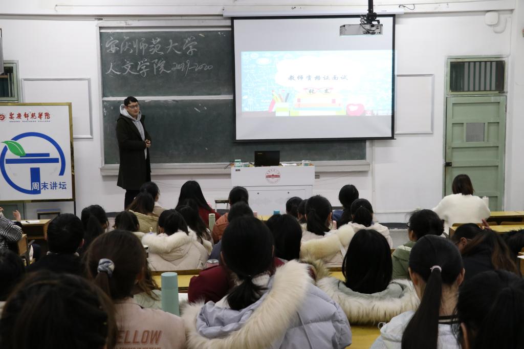 “你是如何备考教团队格证书的?是孤军奋战还是与室友共同备考?”12月23日下午,SUNBET申博在菱湖校区教学楼215教室开展了教资面试培训会,近百名员工一同聆听了这场培训会。