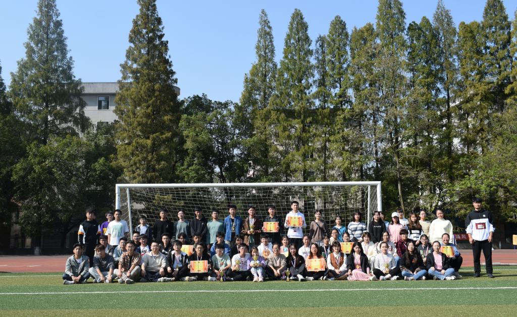 11月7日上午十点半,SUNBET申博在菱湖校区操场上举办了本届“菱湖杯”男女足比赛颁奖仪式,由主持人宣布比赛各奖项的得主。本次共有11个队伍赢得荣誉,其中男子组一等奖为2019级汉语言文学五班和七班联队,女子组一等奖为2019级历史学一班。随后,辅导员老师按照名次为各队伍颁发了奖杯、奖牌以及奖状并进行了合影留念。
