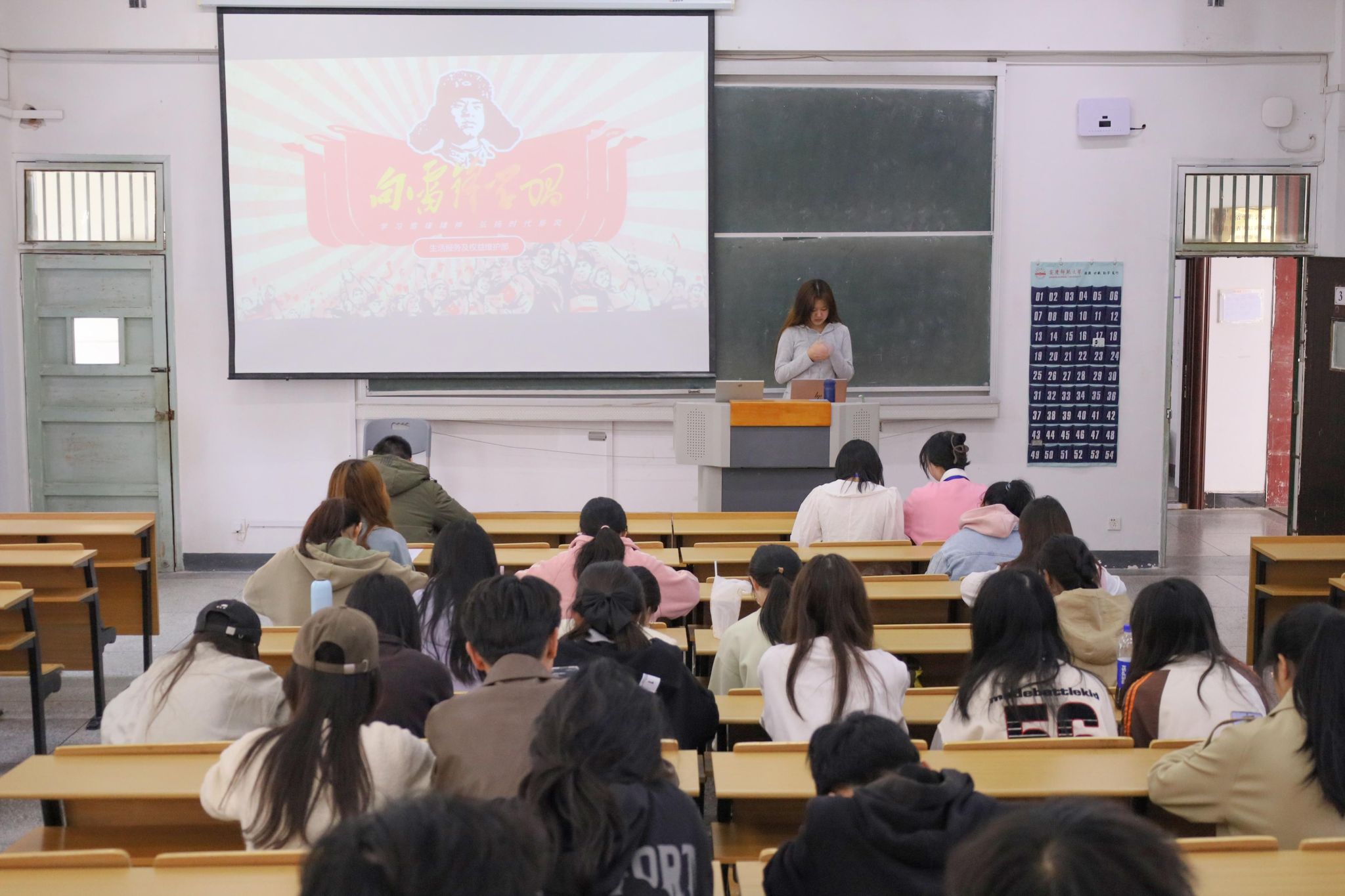 “雷锋同志,一个普通的战士,却用他短暂而光辉的一生,诠释了什么是无私奉献,什么是大爱无疆。”2023级汉语言文学专业(2)班的吴悦以生动的语言、真挚的情感,通过PPT向员工们讲述了雷锋的生平事迹。她表示,为了确保宣讲内容既有历史深度又贴近员工生活,她在活动开始前查阅了大量关于雷锋事迹的资料,结合新时代的雷锋精神的现实意义进行整合,力求让员工们更加深入地认识到雷锋精神的时代价值。宣讲过程中,她借助播放经典影像资料、摘录雷锋语录等方式,全面展现了雷锋精神的内涵。