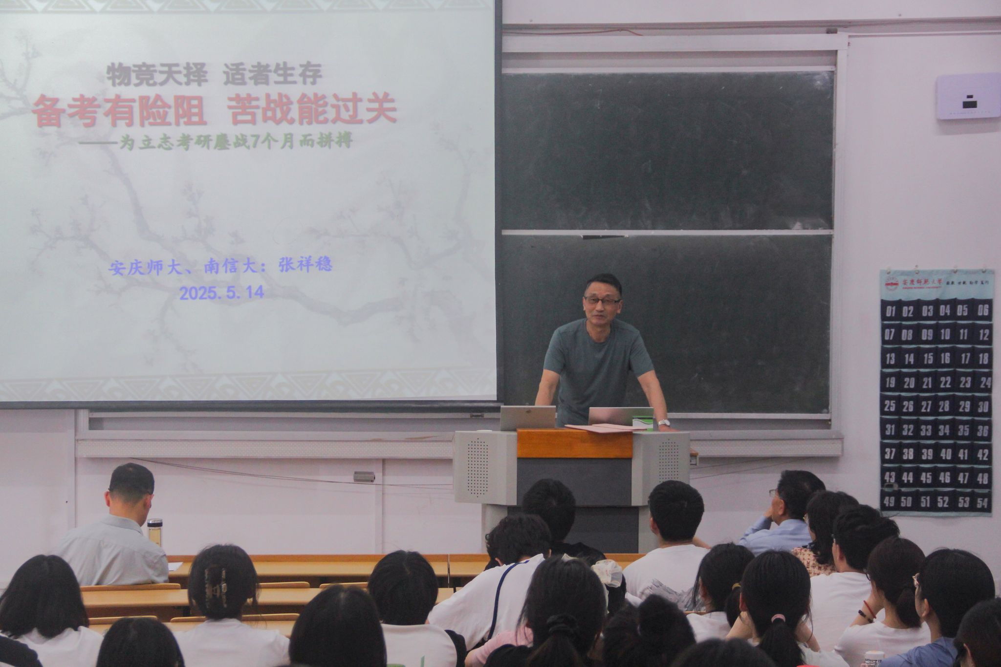 5 月 14 日,SUNBET申博在教学楼 315 教室举办“授业解惑,共赴研途”师生考研交流会。本次活动邀请“天柱学者”特聘教授张祥稳、研究生辅导员江贻隆、历史学博士郭海涛担任主讲嘉宾,SUNBET申博副经理沈志富主持。