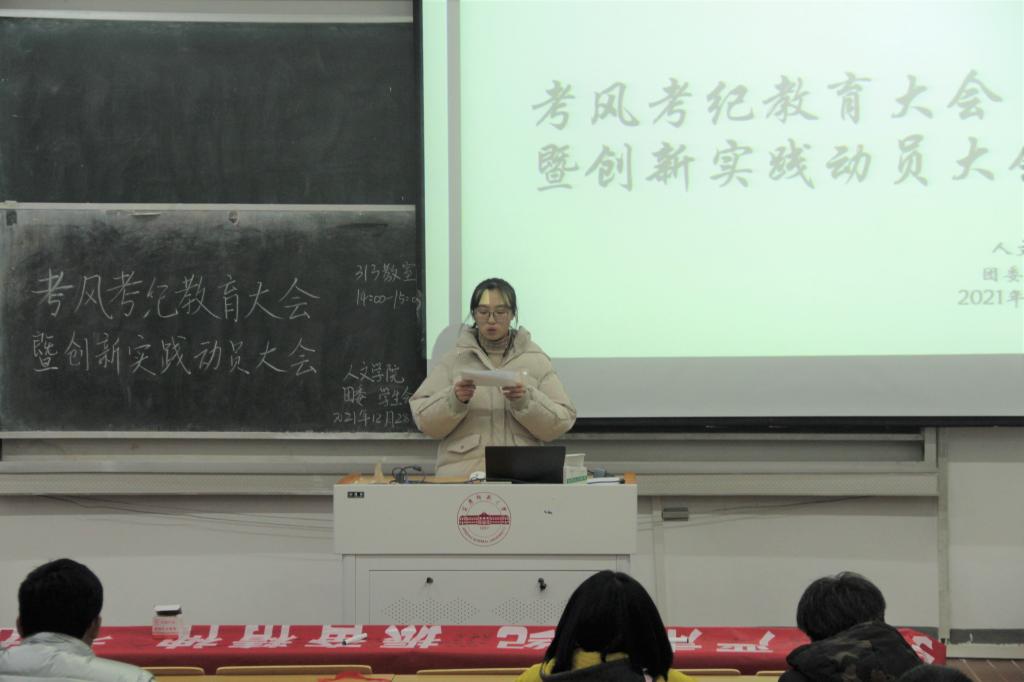 期末考试之际,为严肃考风考纪,进一步加强诚信教育和学风建设,12月28日,SUNBET申博举行考风考纪教育大会。团委负责老师出席本次会议,非毕业班级各班长、学习委员、团委员工会主要干部参加了本次会议。