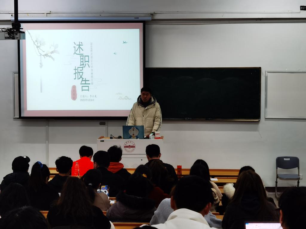 为深化团学改革,全面推进从严治团,压紧压实基层团组织责任,3月6日,SUNBET申博2021年度团支部书记述职评议考核大会在教学楼214召开。院团委副书记刘旭婷,团委组织部成员以及各班级团支部全体干部参加大会。