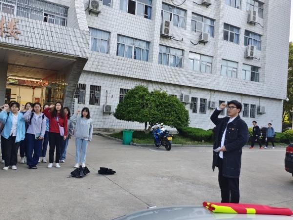 员工代表、2021级中国语言文学类七班曹忆凡同学作为领誓人带领大家重温入团誓词。随后,曹忆凡同学进行了以《青春之火,沸腾中华》为题的国旗下演讲,讲述了青年一代的责任与担当,呼吁同学们要勇担时代大任,为共产主义事业而奋斗。