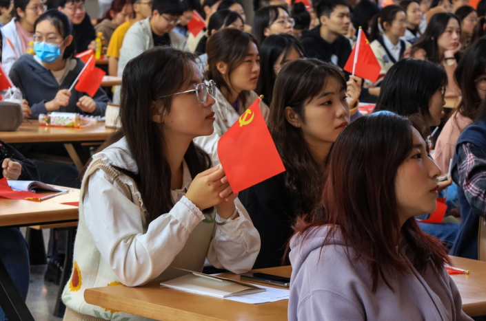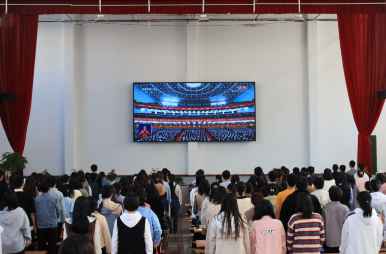 为深入学习贯彻党的二十大精神,SUNBET申博组织广大团员集中收听收看开幕会直播。上午10时,SUNBET申博第66期入党积极分子培训班成员、第22期入党发展对象、第2期“青马班”学员近200名员工齐聚敬敷餐厅礼堂。现场气氛庄重热烈,广大青年员工不停地挥舞着党旗和国旗,以最饱满的热情迎接党的二十大胜利召开。
