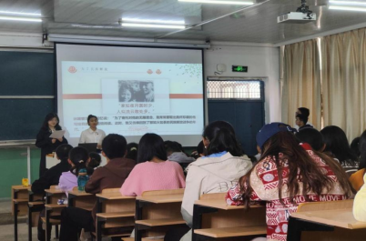 洛阳城里见秋风,欲作家书意万重。宣讲团成员朗读了彭雪枫致未婚妻林颖、刘少奇致女儿刘平平、杨万义致姐姐杨前进、洪余德致父亲这四封家书。宣讲人拆开信封,通过声情并茂的朗读,同一旁娓娓展开的叙述旁白一起,带领同学们越过历史的重重关隘,让聆听的同学们深切感受到了一位丈夫对妻子的深切思念,一位父亲对女儿成长成才所期寄的厚望,一位远在异国的弟弟对姐姐的牵挂,一位儿子作为一名“逆行者”对父亲未能尽全孝心的愧意。