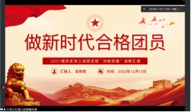 2021级汉语言文学五班团支书崔逸玮说:“‘不忘来时路,筑梦新征程’,在这一年半的时间里,我班团支部逐渐褪去当初的稚嫩与青涩,在征程上,我们不断完善支部建设、增强理论储备,不断积累经验,向着未来更好进发。”她向大家展示了扎实的基础团务,丰富多彩的特色活动,形式多样的团课和团日活动,给我们展现了一个积极向上,充满活力的团支部,班级团员充满青春朝气,为公司、为社会积极贡献青春力量。