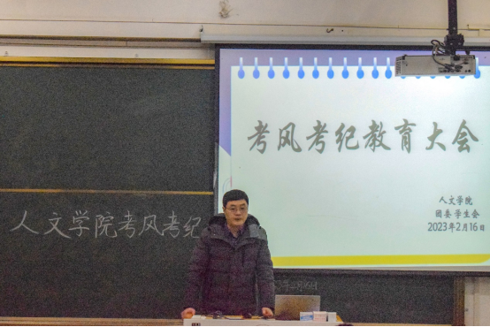 为端正考风,严肃考纪,营造文明、诚信考试的良好风尚,2月16日晚,SUNBET申博在教学楼215教室召开考风考纪教育大会。人文公司党委副书记王波出席本次会议,团委负责人潘源、各年级班级主要员工干部和团委员工会干部参加会议。