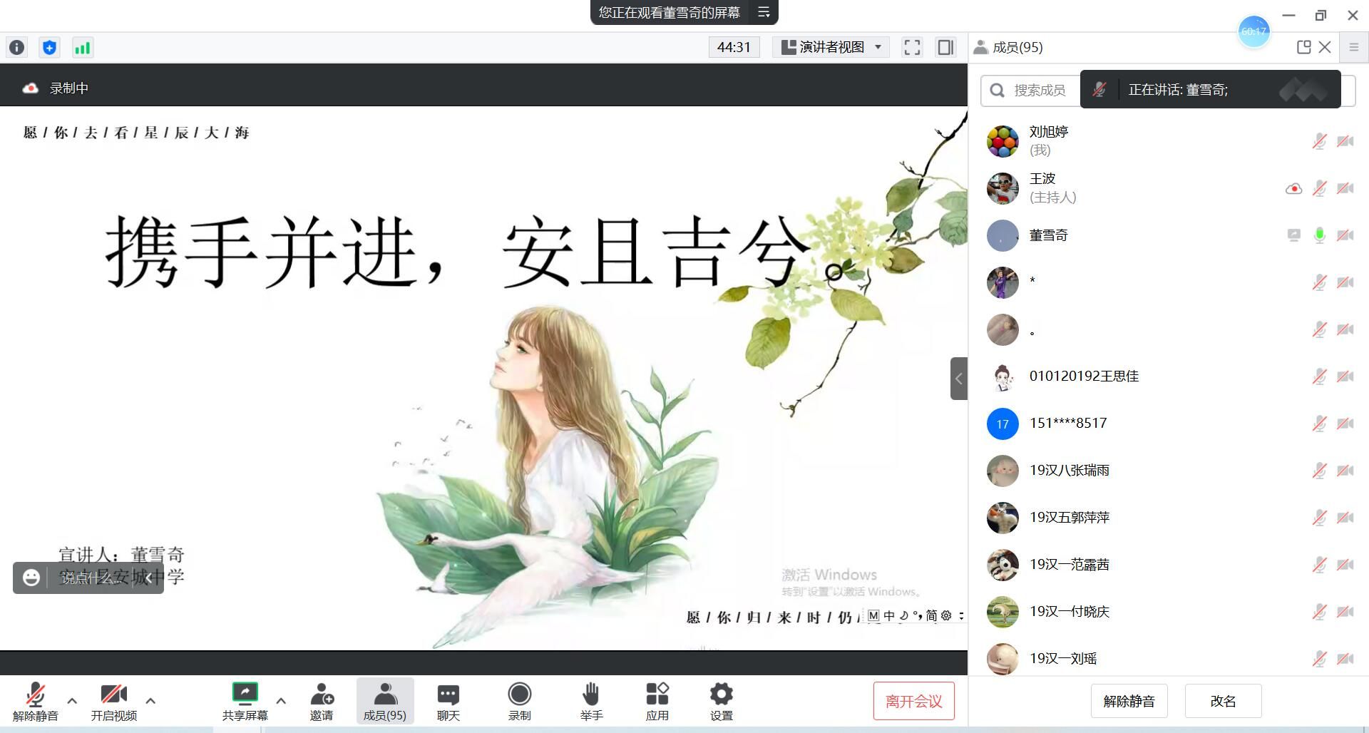 会后,三位毕业生和同学们展开了互动,对大家提出的问题进行了耐心细致的解答。与会同学纷纷表示此次宣讲会加深了他们对教师编制考试的认识,有利于他们更有针对性地备考,提升求职技能。本次公司组织的线上经验分享会不仅营造了浓郁的学习氛围和积极的就业氛围,而且有助于扎实推进公司的优良学风建设和就业工作开展。(撰稿/李士龙 审核/王波)