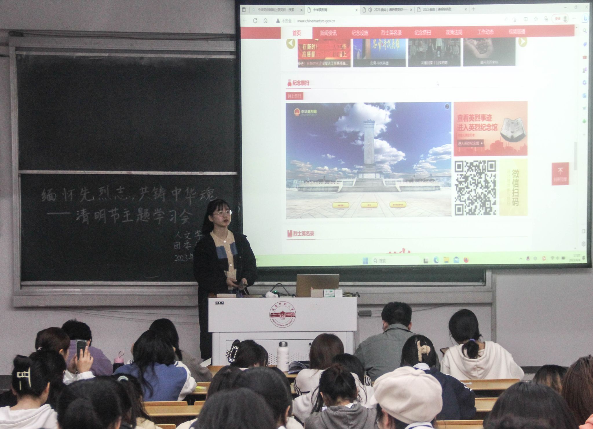 4月4日下午,团委员工会举办了“清明节缅怀先烈”主题学习会,各个部门代表依次上台向同学们讲述一位先烈的故事。有宁死不屈的抗战女英雄朱凡;有“只有站着死,绝不跪下”的革命者陈延年;有大义凛然的革命家方志敏;有早期无产阶级革命家赵世炎……其中,团委办公室部长为我们讲述了青年戍边战士陈榕祥烈士的感人事迹。陈榕祥同志积极参与祖国边防建设,遵守部队纪律,响应党的号召。在一次边防一线的任务中,他为救战友而壮烈牺牲。雪山回荡英雄气,青山有幸埋忠骨。“清澈的爱,只为中国”是铿锵的口号,亦是他一生的写照。通过开展故事会,青年员工对先烈们的英雄事迹有了更深刻地理解,爱国情感更加强烈。