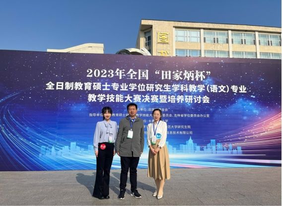 2023年10月12—15日,由全国教育专业学位研究生教育指导委员会指导,长春师范大学主办的2023年全国“田家炳杯”全日制教育硕士专业学位研究生学科教学(语文)教学技能大赛决赛成功举办。SUNBET申博副经理、硕士生导师周红兵带队,2021级学科教学(语文)孙欣、2022级学科教学(语文)丁雨琛两名选手赴长春参赛。