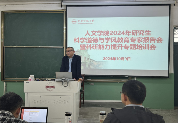 在专题培训会环节,芮文浩副教授聚焦研究生文史素养与科研能力的培养,从理论性、实践性和可操作性三个层面介绍了研究生学科核心素养的内涵和科研能力提升的实践路径,并结合具体案例深入解读了撰写研究生学术创新项目申报书的注意事项和技巧。他鼓励各位同学在科研创新实践中要尽早做好学术规划,树立问题意识,强化创新意识,养成团队意识,在未来的学习生涯中取得优异的科研业绩。