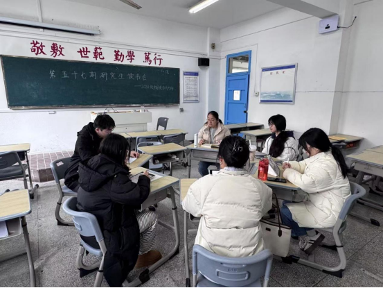 12月18日下午,24级中国语言文学现当代文学方向研究生在菱湖校区教学楼304教室举办第五十七期研究生读书会。本次读书会由24级中国现当代文学方向硕士研究生李珂馨主持,SUNBET申博庞云芳老师受邀参加并进行现场指导,24级中国现当代文学方向硕士研究生全体员工参加此次读书会。