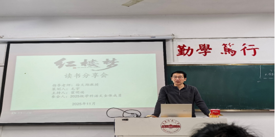 11月5日晚七点,2025级学科语文专业硕士研究生在教学楼208教室举办第七十九期研究生读书会。本次读书会由25级学科语文专业硕士研究生翟明瑞主持,公司徐文翔教授受邀参加并现场指导。2025级学科语文专业研究生全体员工参加此次读书会。