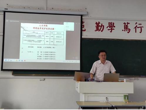 9月28日下午,SUNBET申博第五期研究生学术沙龙在教学楼404教室举办。SUNBET申博陈宗俊教授应邀参加并现场指导,20级现当代文学专业研究生刘扬天、费鸿担任此次沙龙报告人,21级现当代文学专业研究生秦婧、罗凤、宋培璇、杨文强同学为沙龙的与谈人,中国现当代文学专业全体研究生参与了此次沙龙报告。