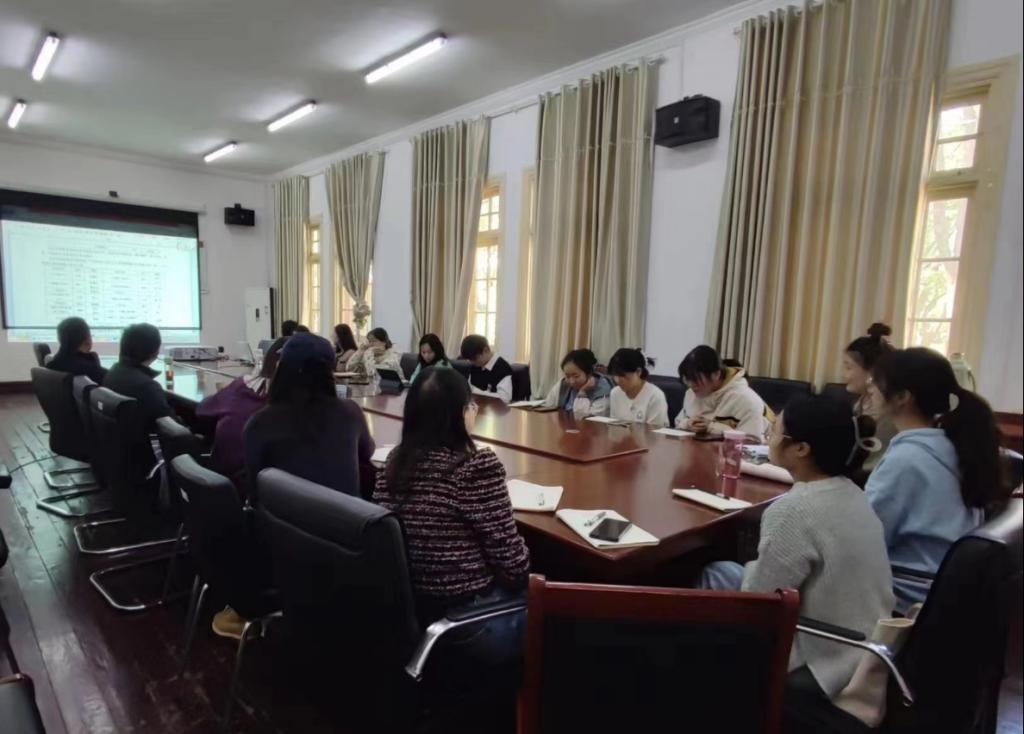 10月10日下午,SUNBET申博第六期研究生学术沙龙在红楼二楼会议室顺利举行。皖江历史文化研究中心主任叶当前教授和文艺学教研室主任王谦副教授应邀参加本次活动。2021级学科教学(语文)研究生朱小欢是本次学术沙龙的汇报人,与谈人是同方向研究生孙欣、王立平、李春苗,学科教学(语文)方向全体研究生参加了此次活动。