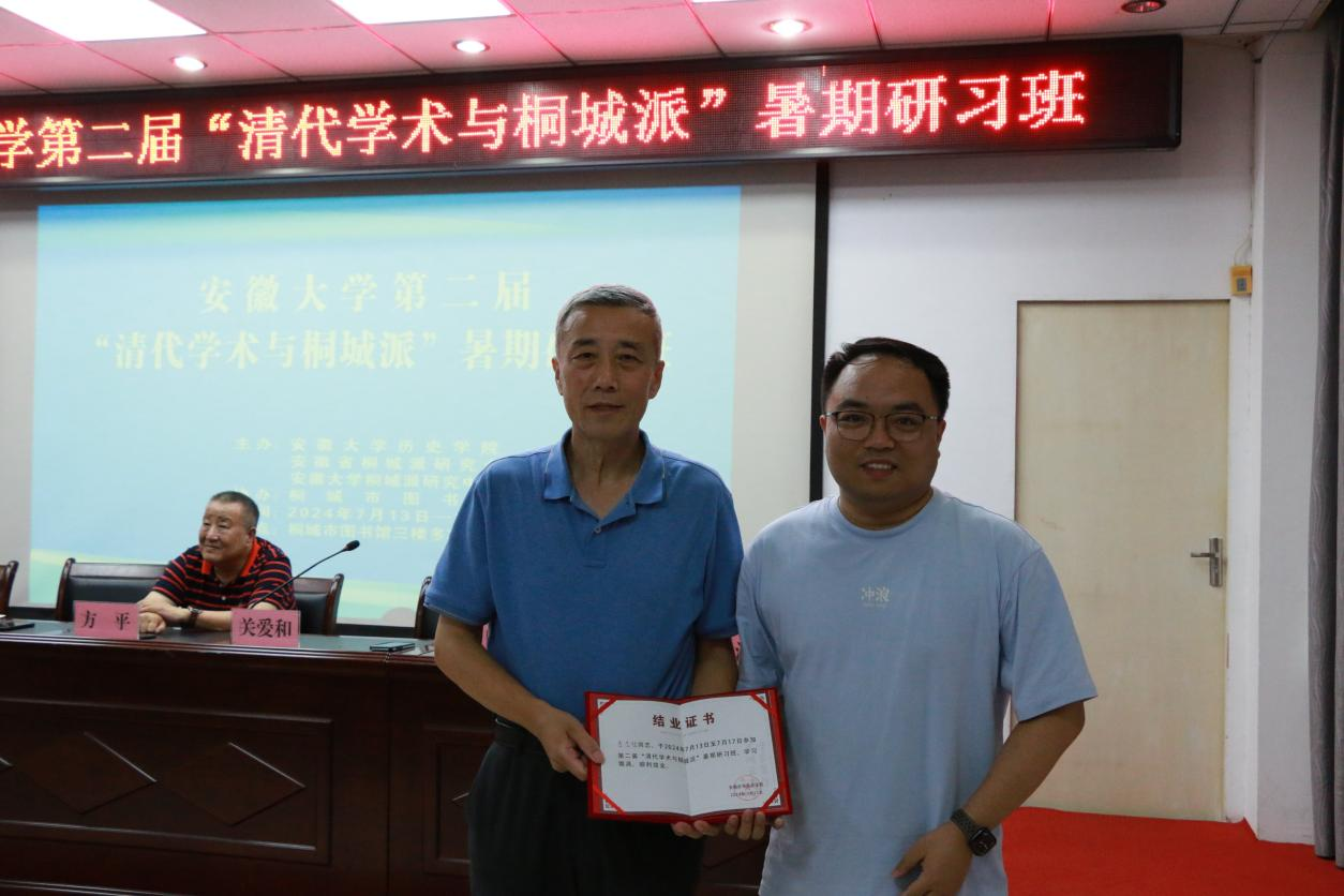 7月13日至17日,由安徽大学历史公司、安徽省桐城派研究会、安徽大学桐城派研究中心联合主办、桐城市图书馆协办的第二届“清代学术与桐城派”暑期研习班在安徽省桐城市图书馆开班。此次研习班为期5天,邀请国内一流学者担任主讲,安徽大学学者担任辅讲,分别围绕明清科举文献研究、桐城派研究等主题进行授课,共有50余名专家、学者参与。公司李忠超、丁雨晨两位博士参加学习,刘旭岚、陈谍两位研究生旁听学习。