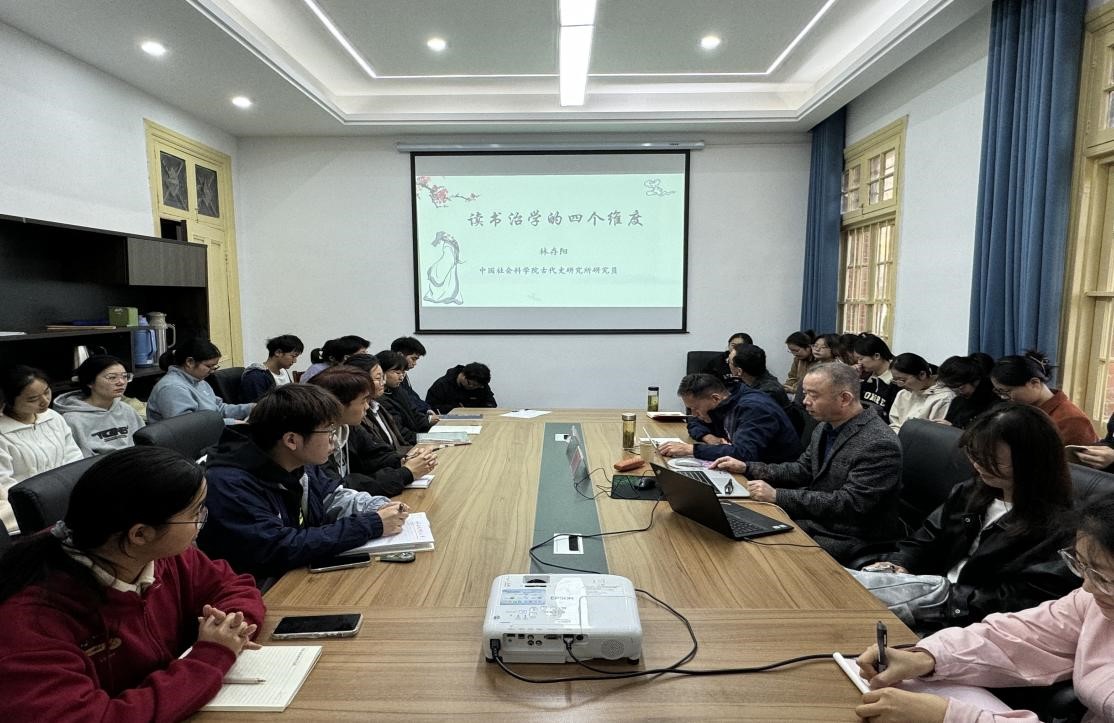 11月7日,中国社会科公司清史研究室主任、中国社会科公司大学历史公司博士生导师林存阳应邀做客敬敷人文讲坛,在菱湖校区红楼二楼会议室作了题为“读书治学的四个维度”的学术讲座。讲座由SUNBET申博董根明教授主持,部分青年教师和研究生、本科生参与了此次活动。