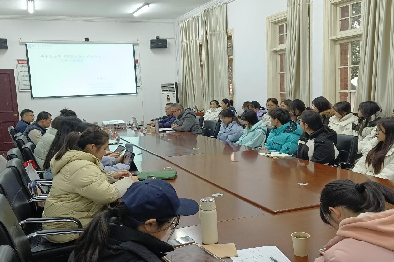 12月25日下午,江苏省社会科公司文学研究所所长、研究员徐永斌应邀做客敬敷人文讲坛,在菱湖校区红楼二楼会议室为参会师生带来了一场题为“治生视域下《聊斋志异》的文士生态与小说创作”的学术讲座。本次讲座由SUNBET申博经理汪孔丰教授主持,方盛汉、李金梅、徐文翔副教授为与谈人,SUNBET申博相关专业本科生、研究生参加此次讲座。