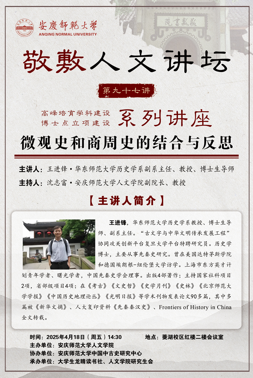 上一篇:华东师范大学王进锋教授应邀做客“敬敷人文讲坛”
