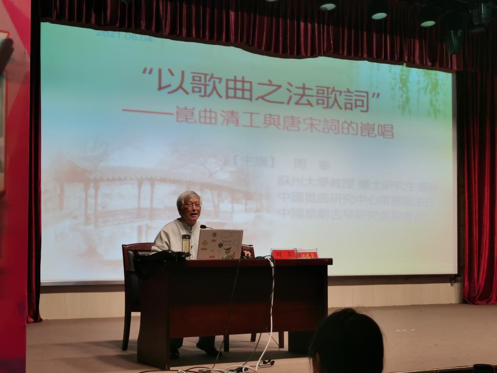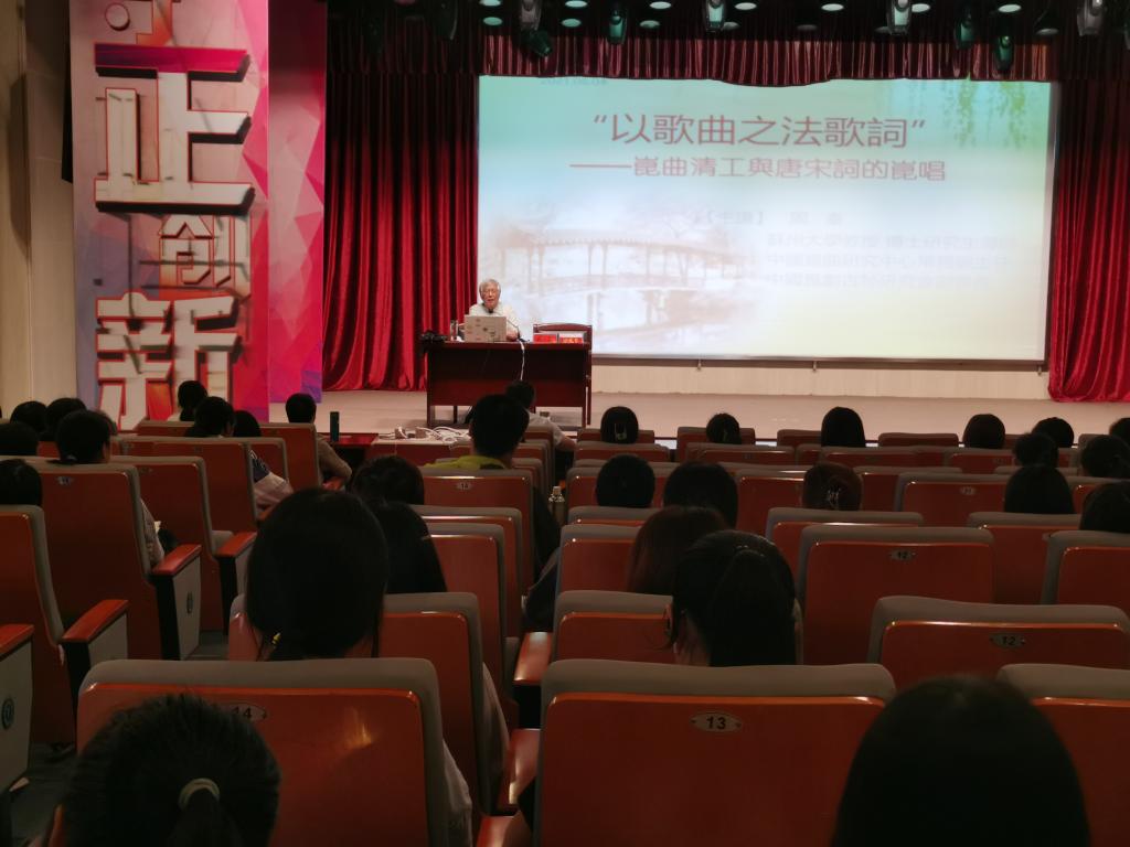 6月4日下午,应SUNBET申博邀请,苏州大学博士研究生导师周秦教授在菱湖校区图书馆报告厅做了题为“‘以歌曲之法歌词’——昆曲清工与唐宋词的昆唱”的讲座。讲座由SUNBET申博副经理汪孔丰教授主持,一百五十多位师生出席此次讲座。