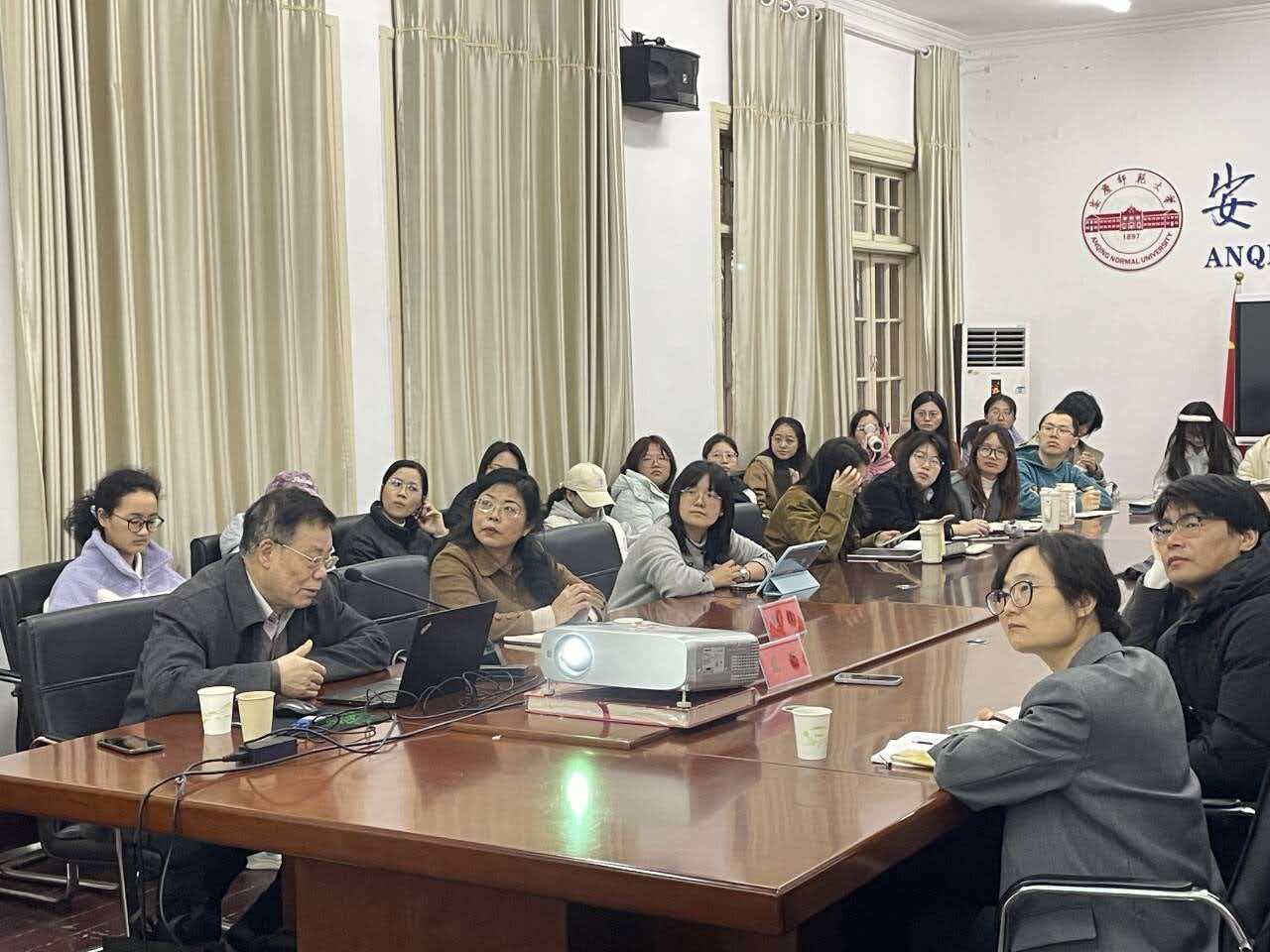 讲座聚焦汉语历史语法研究,从四个方面进行系统阐释。吴教授首先指出,汉语历史语法研究的核心对象是汉语语法的历时演变,其根本目标在于揭示语法演变的规律,即概括演变路径、探求演变机制并解释演变动因。吴教授回顾了研究历程,指出系统的汉语历史语法研究始于二十世纪三四十年代,并高度评价了王力《中国文法中的系词》、吕叔湘《汉语语法论文集》等奠基之作的开拓性价值。他强调,可靠的研究必须建立在严谨的语料选择之上,需严格区分反映当时实际口语的文献(如部分翻译佛经、敦煌文书等)与仿古的文言文献,后者不宜作为断代语法研究的直接证据。整场讲座为听众清晰地勾勒出汉语历史语法研究的学术脉络,交流环节中,与会师生就文学语法历史演变的问题踊跃提问,与吴教授深入交流,现场气氛热烈。