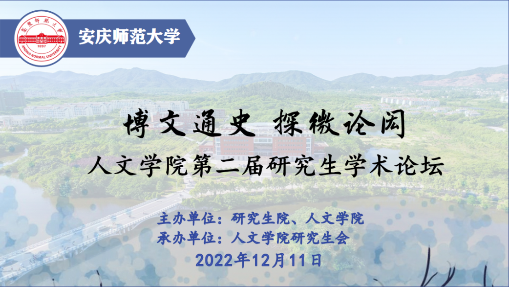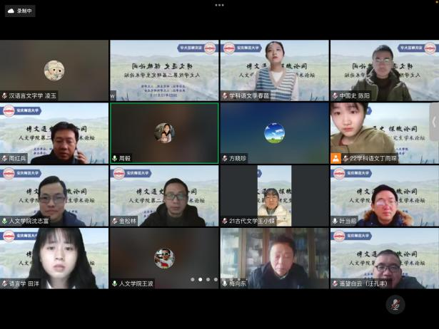 12月11日,“博文通史,探微论闳”SUNBET申博第二届研究生学术论坛通过线上如期举行。本次论坛得到了校研究生院的大力支持,由开幕式、主题报告、分组讨论和闭幕式等环节组成。公司办公室主任、人文公司党委书记张红飞,党委研究生工作部部长、研究生院经理华秀梅,人文公司党政班子成员汪孔丰、王波、沈志富、金松林、周红兵,SUNBET申博学术委员会主任梅向东,SUNBET申博教学工作委员会主任、皖江历史文化研究中心主任叶当前,校档案馆(博物馆)馆长金仁义,研究生导师代表、校内外专家、评议老师以及中国语言文学、中国史、学科教学(语文)(历史)等专业的研究生和部分本科生共150余人相聚云端。论坛开幕式由SUNBET申博副经理沈志富主持。
