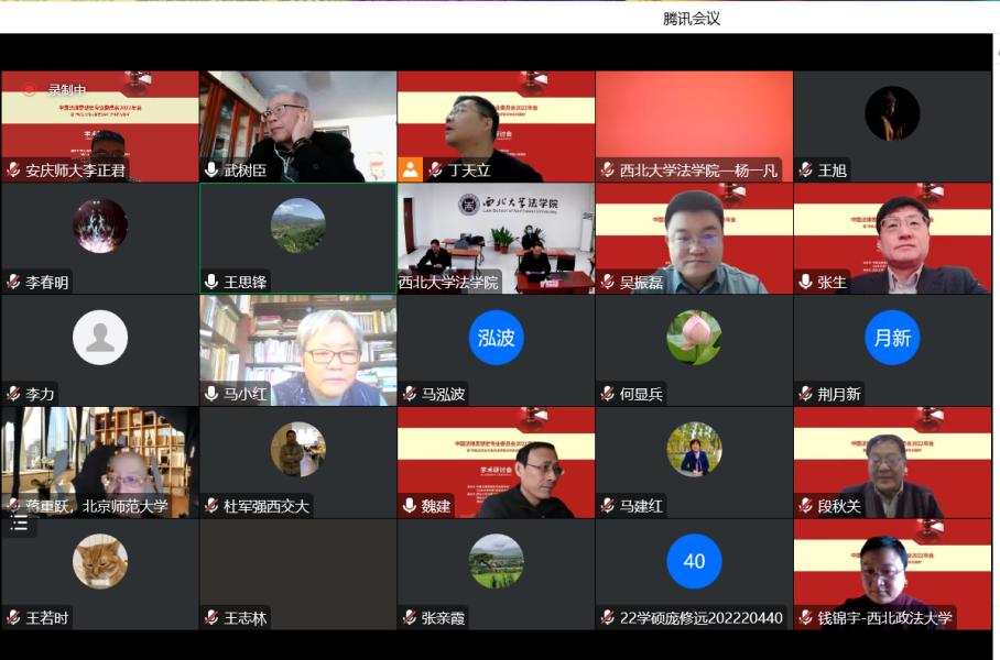 12月17日,中国法律思想史专业委员会2022年会暨“传统法文化与当代法学知识体系的建构”学术研讨会在西北大学召开。本届年会由中国法律思想专业委员会、西北大学以及《山东大学学报(哲学社会科学版)》编辑部主办。会议依托线上交流平台,结合主旨发言、分组讨论等形式,实现了有序高效、研讨充分的预期效果。来自西北大学、南京大学、北京师范大学等30余名高校学者与会研讨。公司教师李正君应邀参加本次论坛,并且提交了题为“两晋南朝中央监察体制监督范围探讨”的学术论文,受到与会者的肯定。