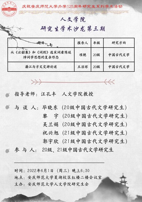 上一篇:【研究生学术沙龙(4)】明清时期安庆大观亭变迁考述/试论明清时期安庆佛教地理的影响条件