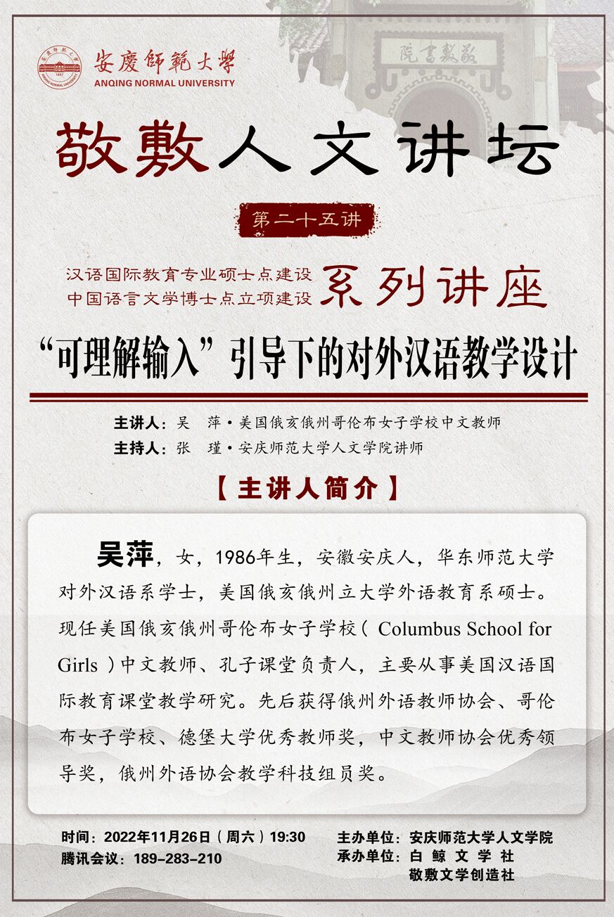 上一篇:【敬敷人文讲坛(26)】文化教材编写的理念与实践