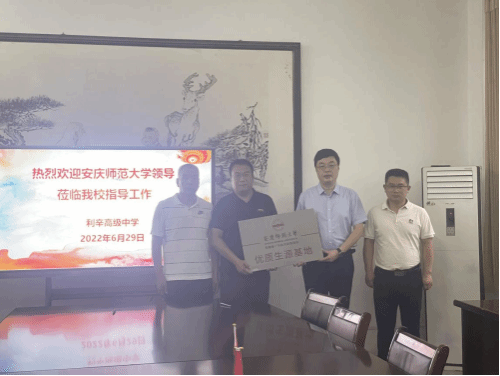 王波代表公司与利辛县高级中学签订了优质生源基地协议书,进行了“优质生源基地”的挂牌。