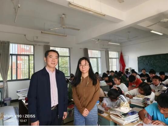 与2020级汉语言文学专业顶岗支教生吴萌萌课间合影。