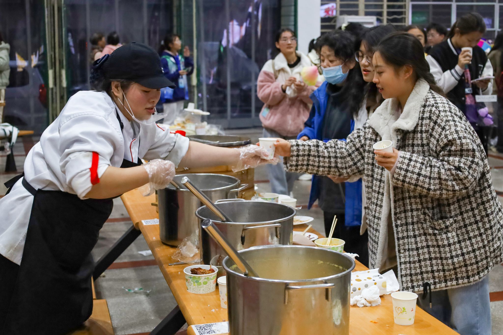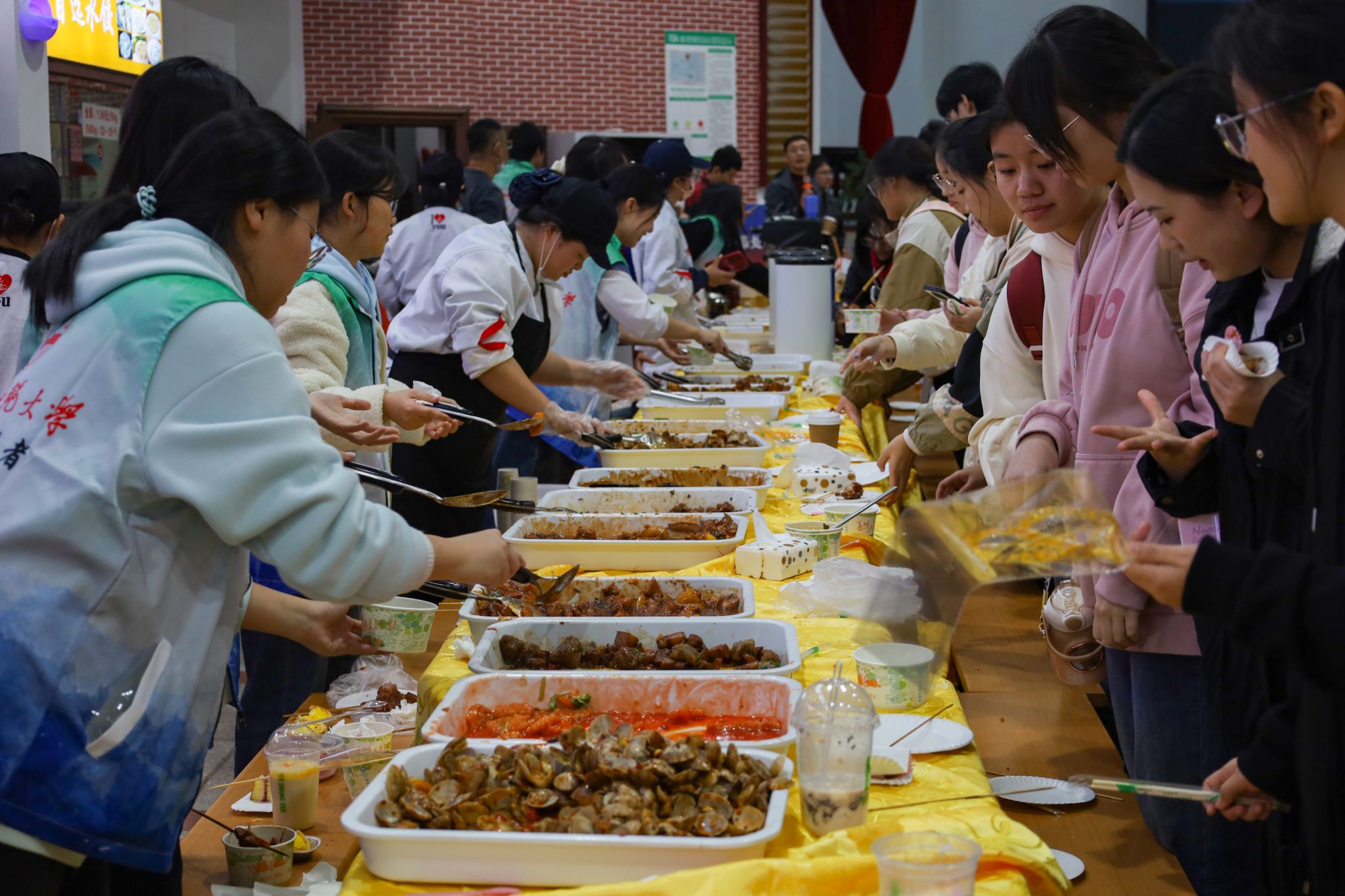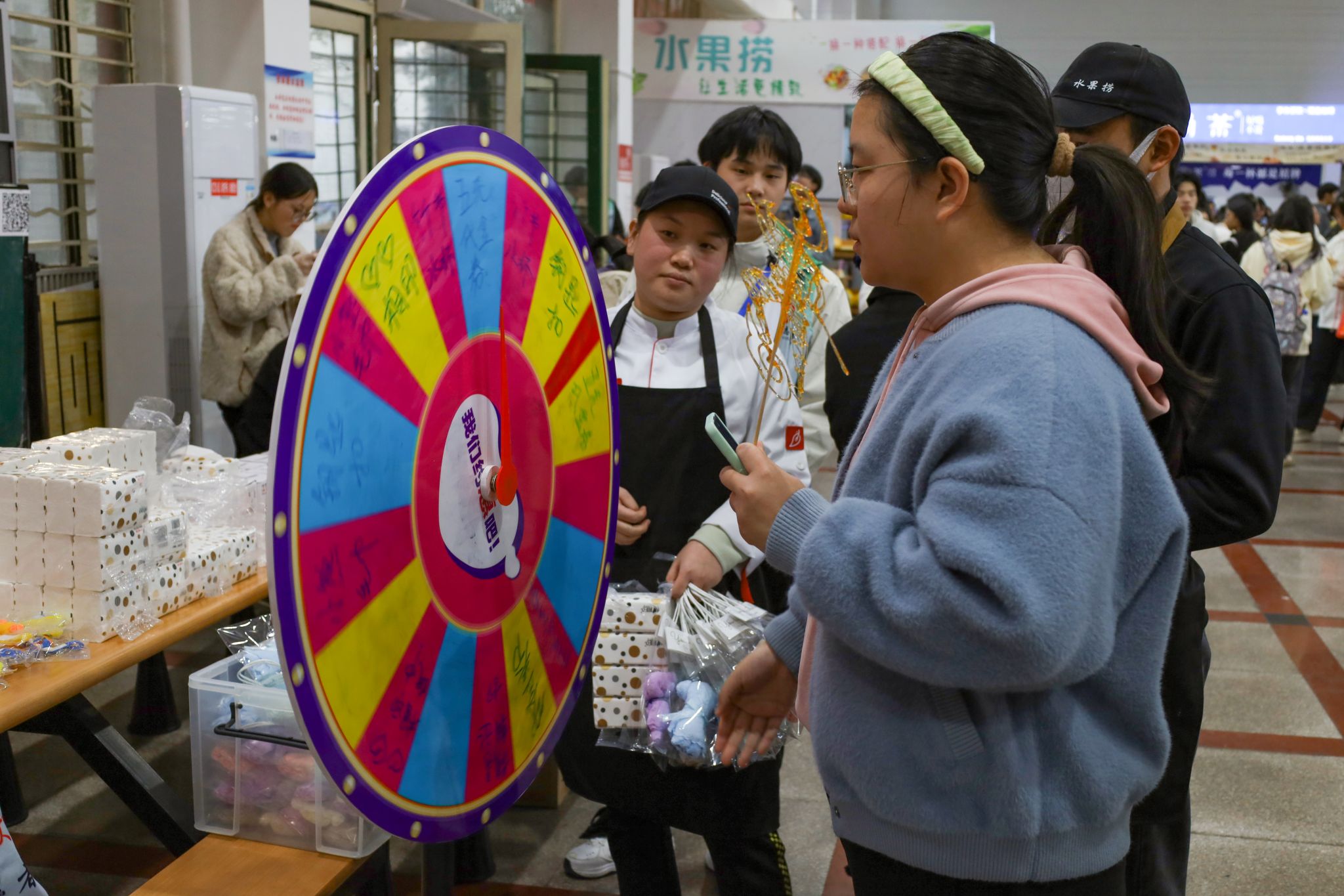 除了琳琅满目的美食,现场还设有趣味转盘抽奖小游戏,为美食节增添乐趣。“又能吃又能玩,美食娱乐一应俱全,公司的安排太贴心了。”历史学专业2021(3)班的付杨静怡在体会过趣味转盘抽奖游戏后感叹着现场热闹且愉悦的氛围。“虽然食堂里人头攒动,但大家都能够遵守秩序,有条不紊地排队品尝美食。”她表示,和朋友一起参加活动吃到了好吃的食物,玩到了好玩的游戏,体会到了互动性和参与感,满足味蕾的同时也增强了朋友之间的交流互动。
