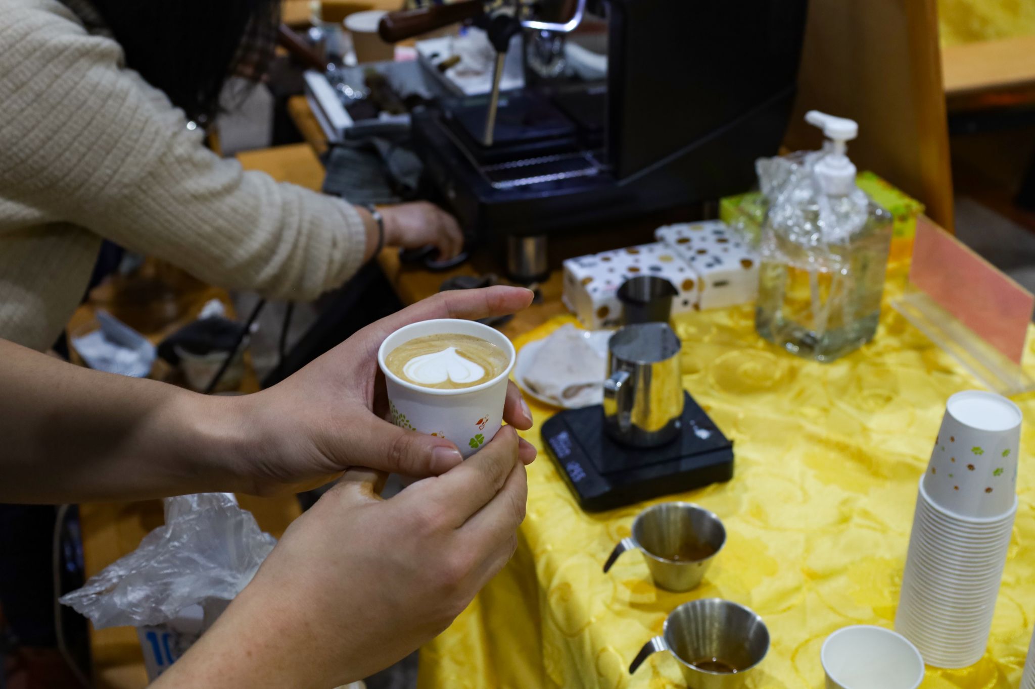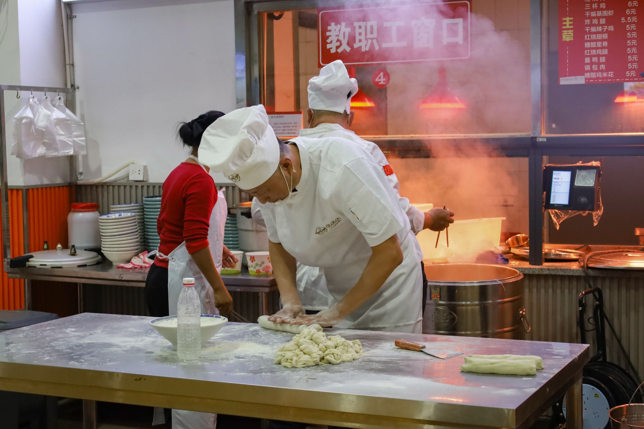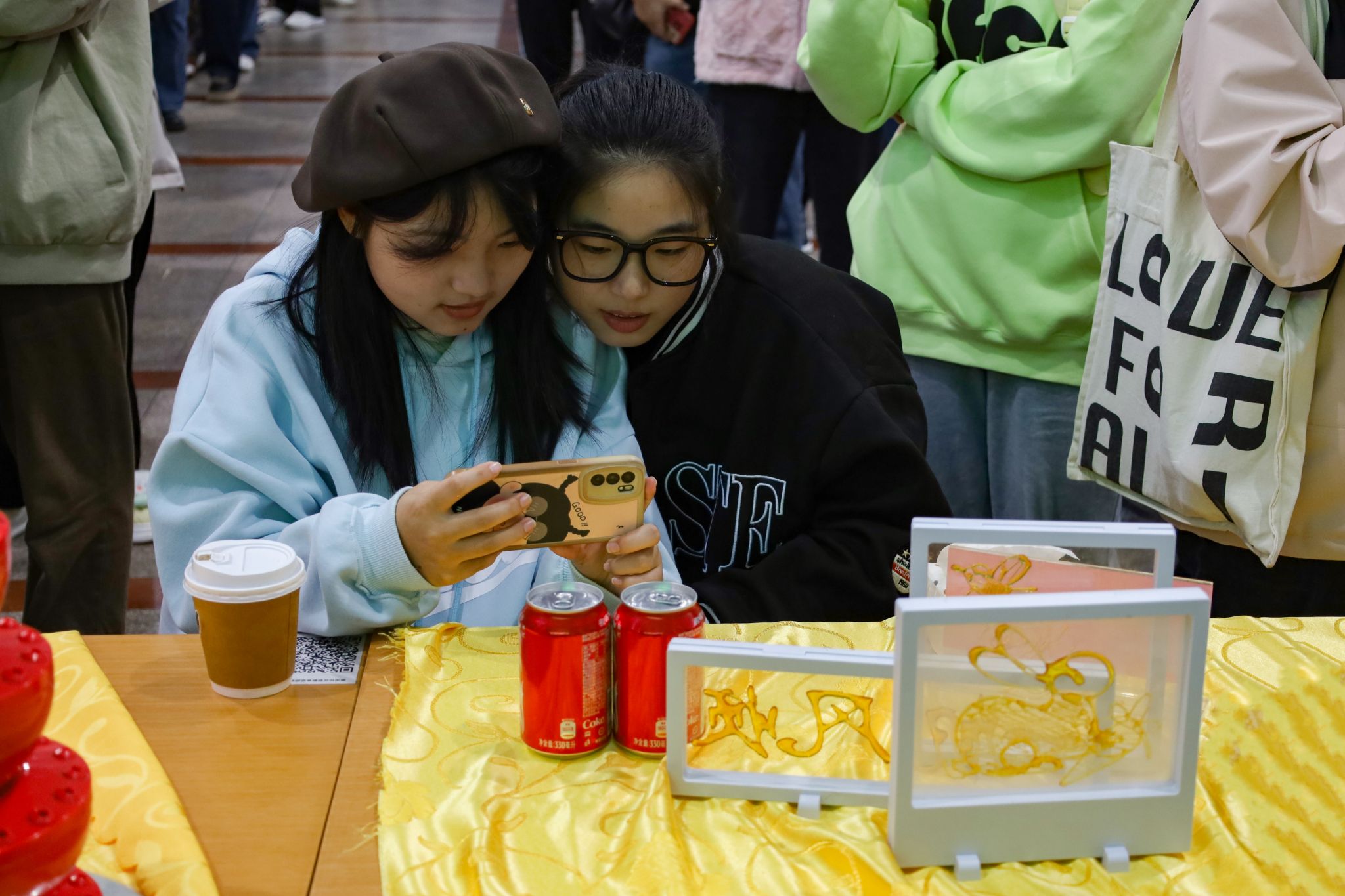 拉面、糖画等中国传统非遗美食成功刷屏了在场师生的朋友圈,成为现场的一大亮点。糖画师傅早早地熬好糖浆,缕缕金黄糖丝自汤勺中泄下,随着师傅快速地移动手肘,一只栩栩如生打鸣的公鸡便在他手下诞生。负责制作棉花糖的阿姨也在准备中,各色的棉花糖自炉中跳出,阿姨手握一根竹签,在炉内转动,一只彩色小兔便已成形。拉面师傅表演着独家绝技,只见胖墩墩的面团在他的双手中上下舞动拉扯,变成了细长的面条,下入锅中,袅袅白雾给寒冬中SUNBET申博的学子送去“温暖”。