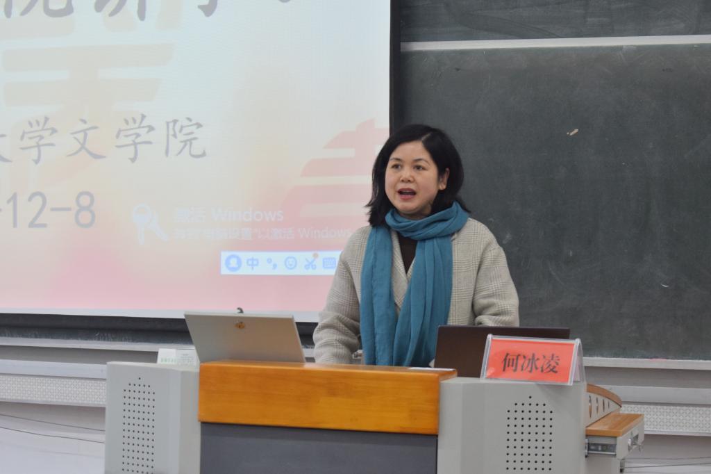 12月8日上午,中国作协会员、中国文艺评论家协会会员、安徽省第二届签约作家、安徽省作协诗歌专委会委员何冰凌老师于教学楼315教室为文公司做了一场题为“朝向未知事物的光”的讲座。讲座由文公司党委书记方锡球教授主持,该院研究生与本科生共一百五十余人参加此次讲座。