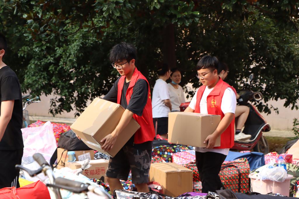 因公司融合和专业调整,这学期历史学专业员工需从龙山校区搬迁至相距15公里的菱湖校区内学习生活。由于路途较远,行李较多,作为安徽省党建工作样板支部,SUNBET申博员工第二党支部的志愿者们积极亮出党员身份,主动穿上“红马甲”,当起了同学们的“行李搬运工”。