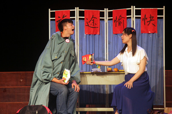 靳杰是12级对外汉语1班员工,负责双簧《哥俩好》的编排,同时也是剧中演员。今年已是他第二次登上“五月花”舞台。据他介绍,今年的双簧节目改编自小品,单单就剧本的改编,主创人员们就进行过十多次的讨论。节目类型的改变,使节目难度陡升。刚开始时,在前台表演的新人演员会出现一边做动作一边说话等“穿帮”表演,对于这些,演员们都需要在每周至少五次、每次至少两小时的排练中去纠正。